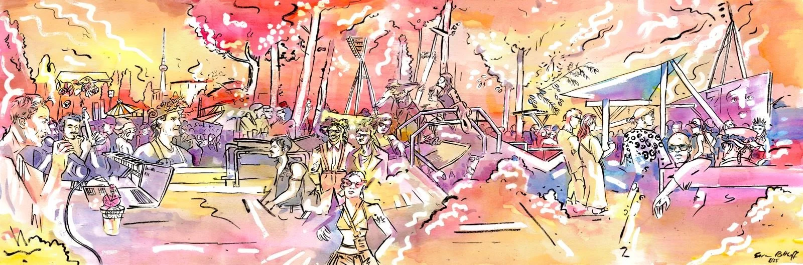 Her live drawing project, Drawing Alive, engages audiences in real-time, where she creates vivid, ink-based illustrations that merge abstraction and figuration. Using brushstrokes and high-pigmented watercolors, her drawings capture the spontaneity and emotion of each moment. This project bridges traditional art with contemporary event culture, turning audiences into participants of a creative process where art unfolds before their eyes. Whether at festivals or intimate gatherings, her live drawings become lasting records of the atmosphere, the people, and the stories she captures.