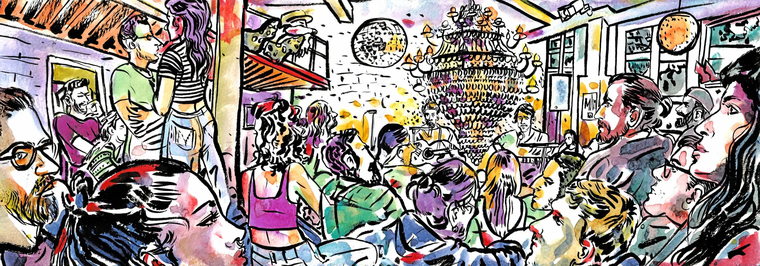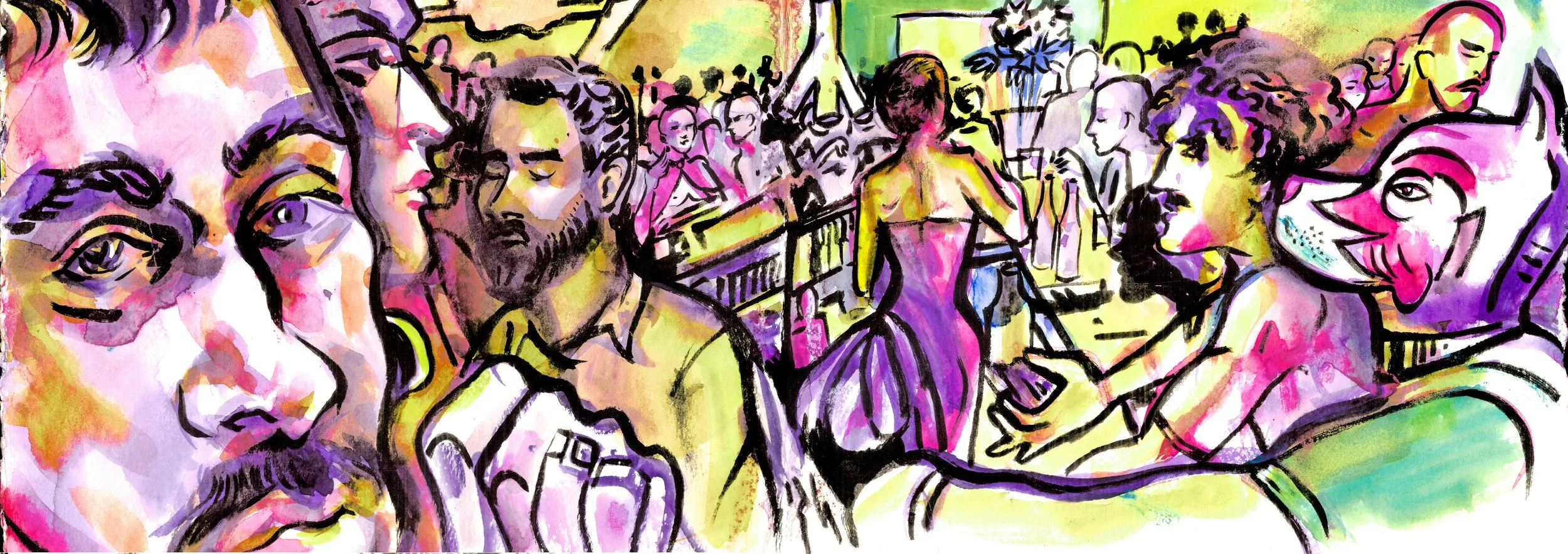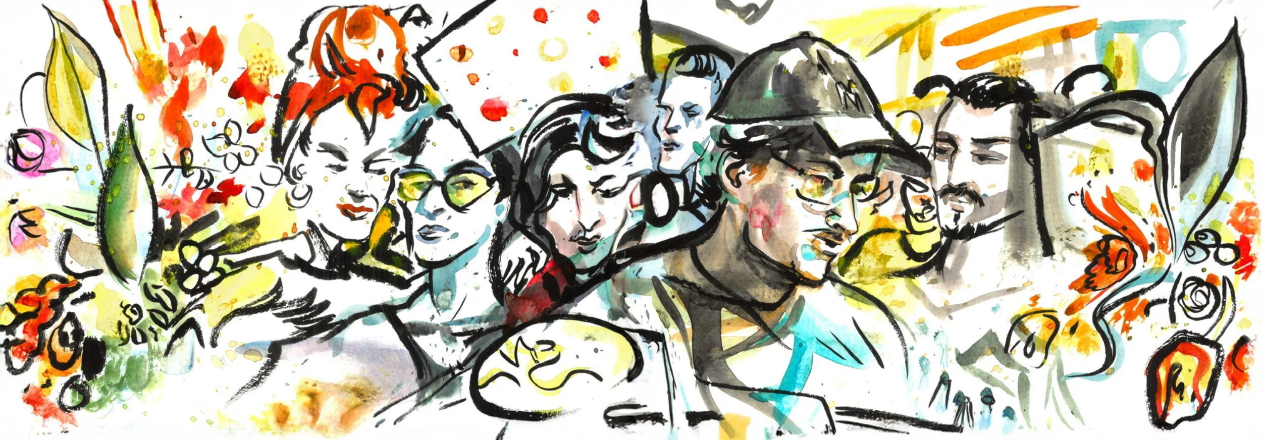 These pieces are born from creativity, freedom, and human connection that flourish amidst the chaos of festivals, clubs, concerts, and cultural happenings. Each sketch reflects the raw energy of that magical, wild world with a special focus on the people. Every brushstroke and splash of color captures not only the faces, but also the atmosphere that makes Esra’s art an unforgettable experience...
